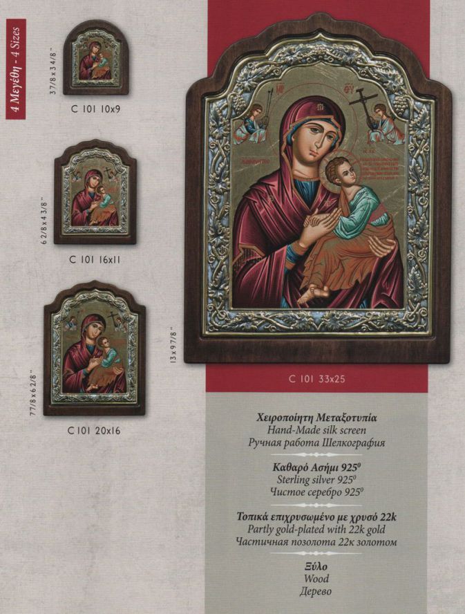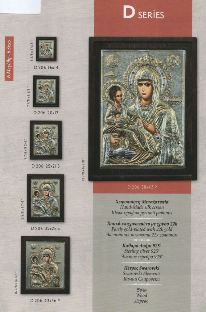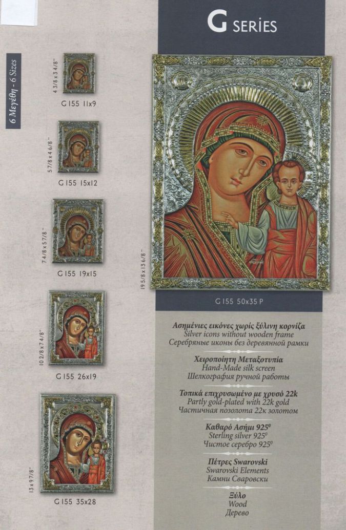 Im Programm führen wir unterschiedliche Serien von Siebdruckikonen mit einem Oklad aus 925° Silber, das zum Teil im elektrolytischen Verfahren mit 24k vergoldet wird.
